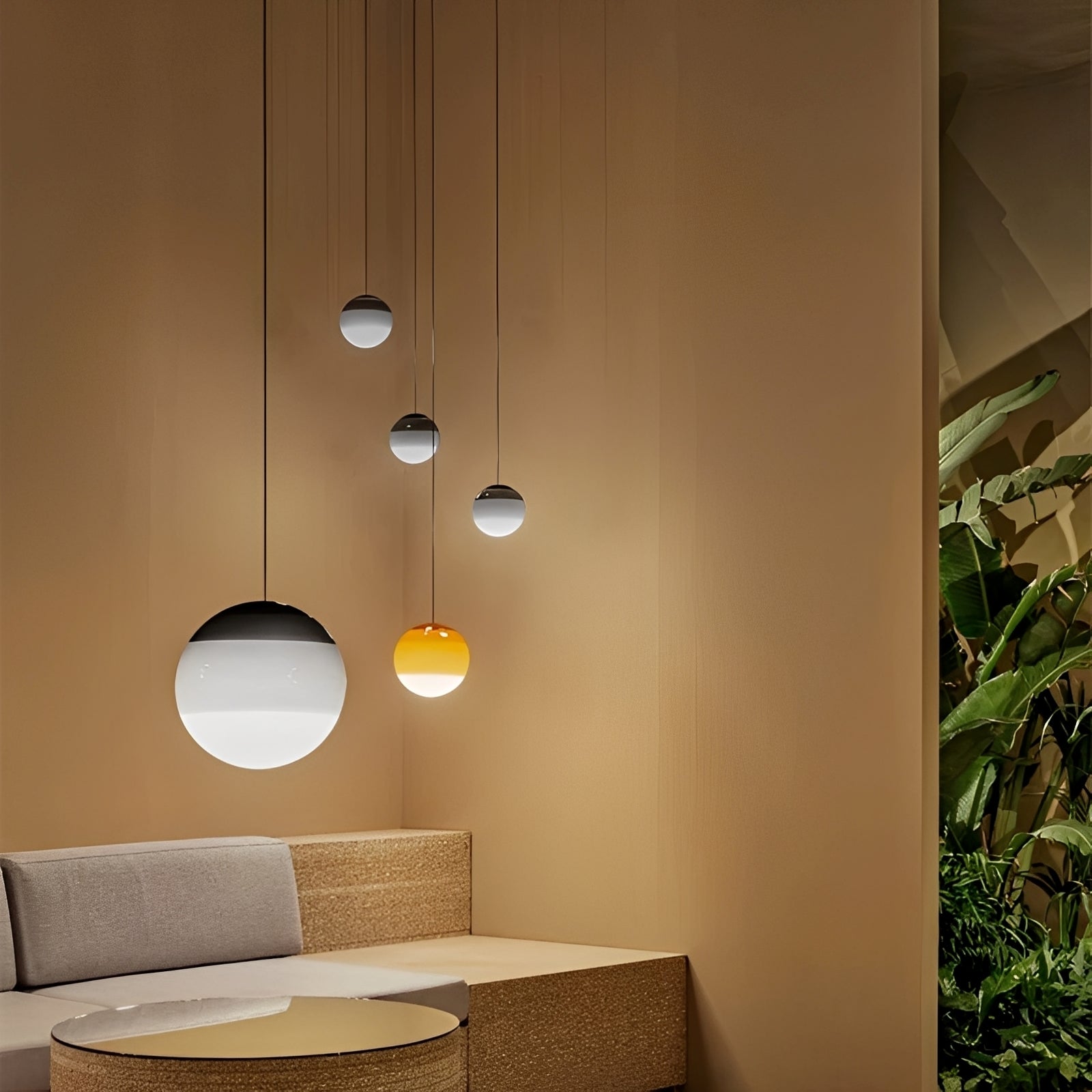 Anne vereint nordischen Minimalismus mit dem eleganten Glanz von farbigem Glas. Die sanften Farbverläufe erzeugen eine warme und stilvolle Lichtwirkung, die jedem Raum eine besondere Atmosphäre verleiht.