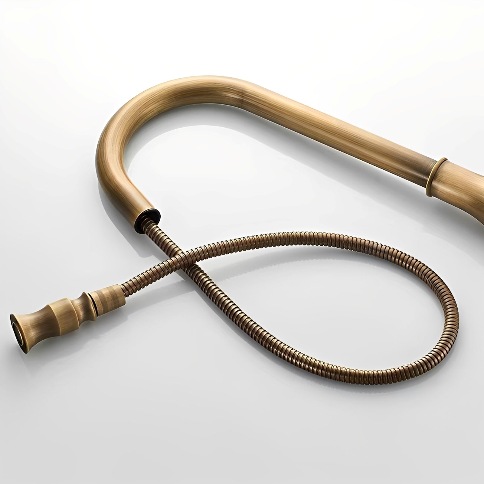 Valerio vereint nostalgisches Design mit moderner Flexibilität – ideal für stilvolle Küchen oder Waschtische. Die Armatur aus hochwertigem Kupfer punktet mit antikem Look und ausziehbarem Auslauf. Perfekt für bequemes Spülen und effektive Reinigung. Die langlebige Konstruktion mit Einhebelbedienung sorgt für einfache Handhabung. Valerio ist die elegante Wahl für Retro-Liebhaber.
