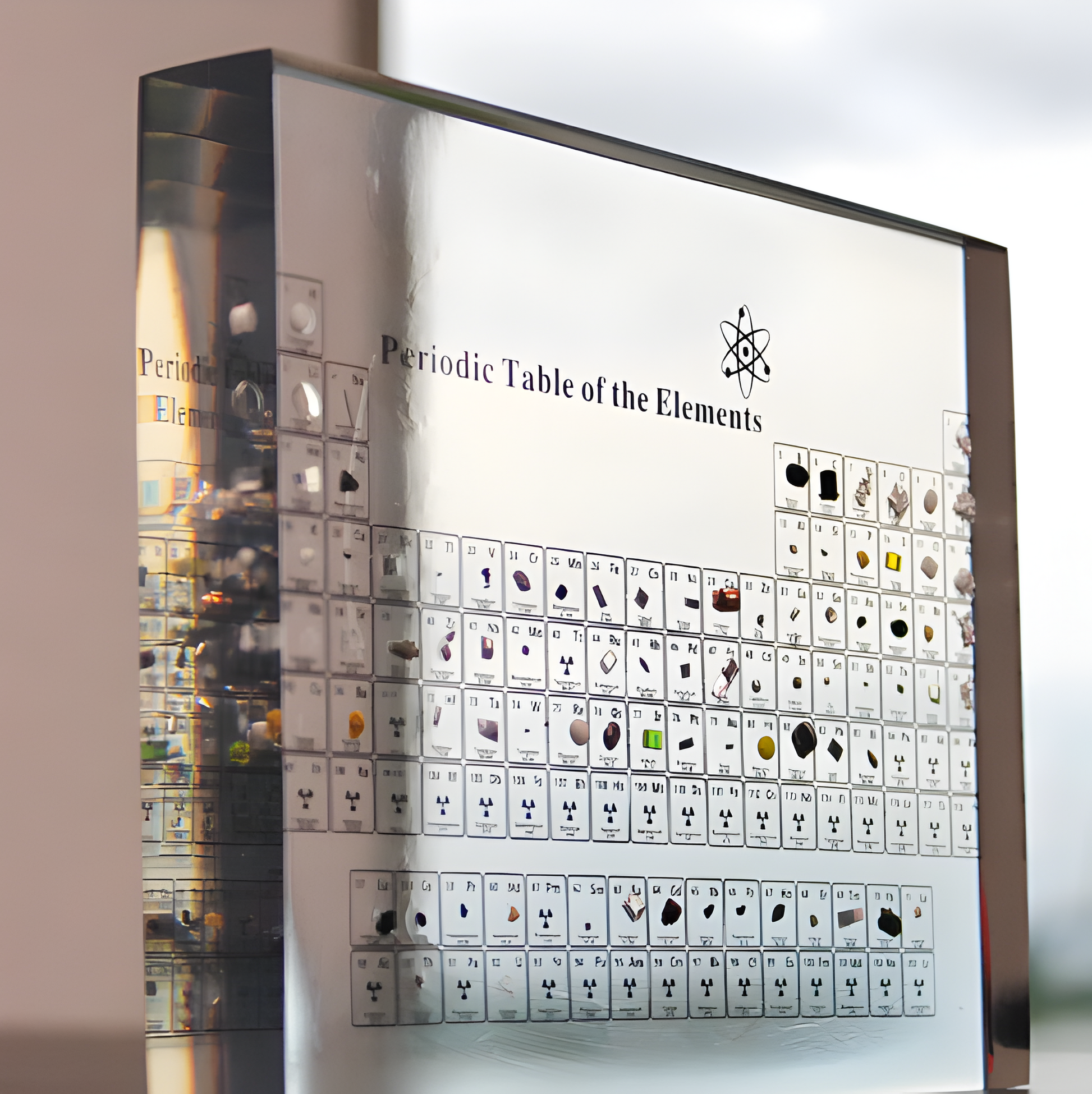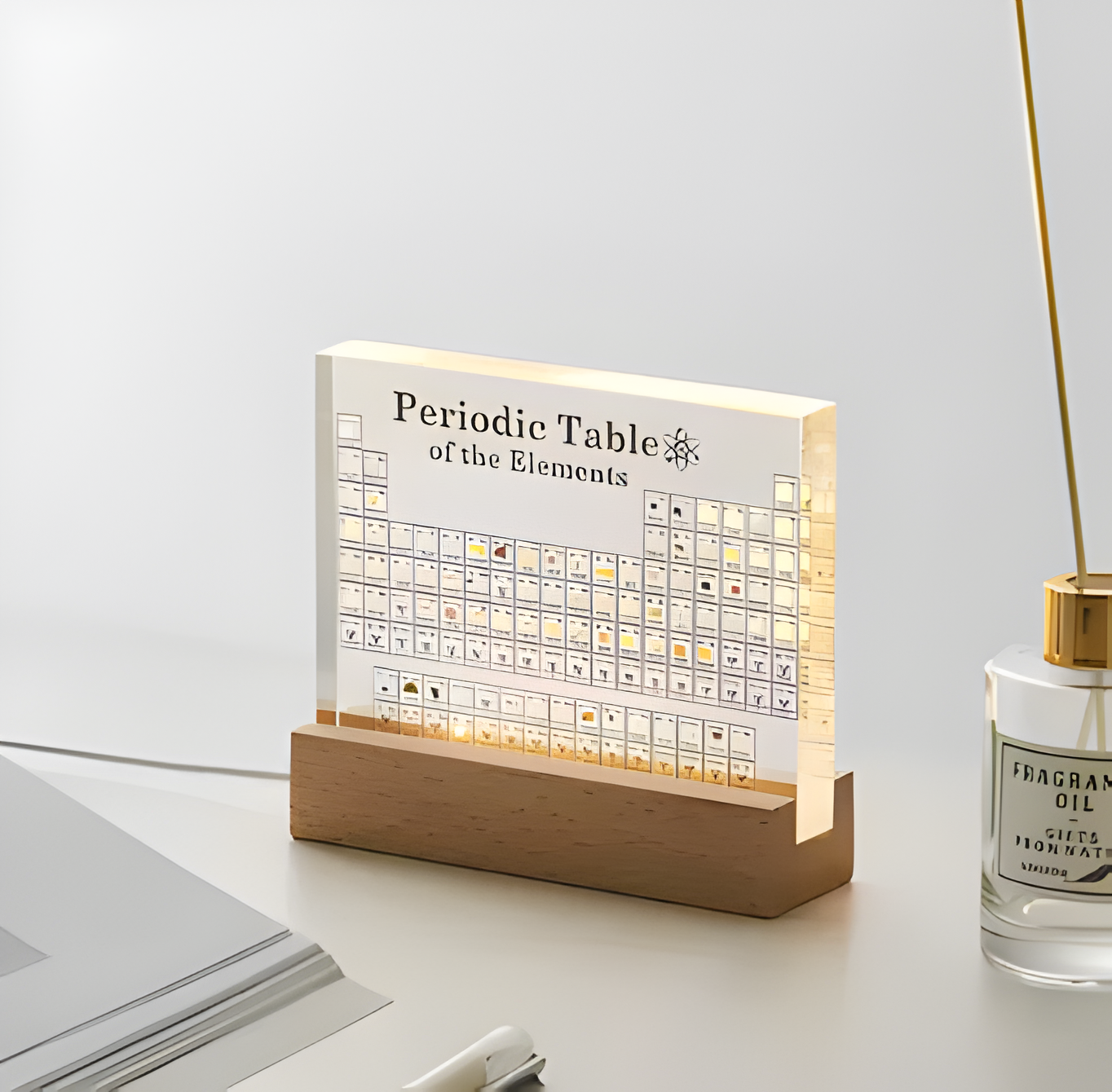 Das Aurelia 3D-Acryl-Periodensystem ist ein beeindruckendes, dekoratives Sammler- und Lernobjekt. Jede Variante enthält transparent eingebettete echte chemische Elemente, kombiniert mit einer modernen LED-Beleuchtung, die die Struktur des Periodensystems eindrucksvoll hervorhebt.