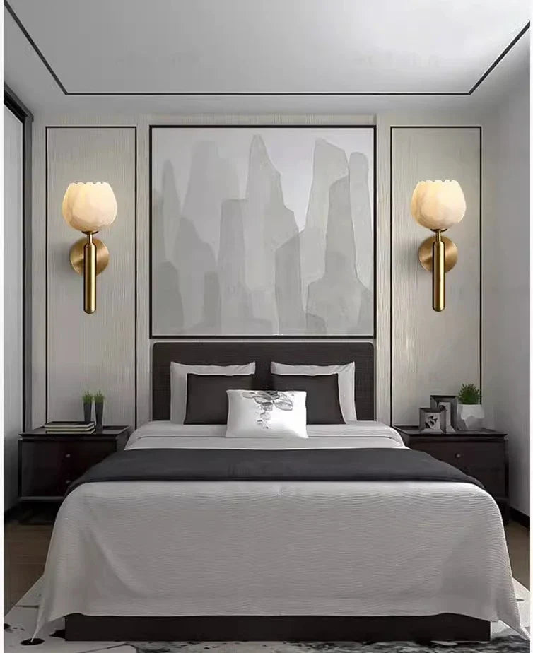 Mit Aurora verleihen Sie Ihrem Schlafzimmer oder Wohnbereich eine luxuriöse Note. Diese elegante Wandleuchte kombiniert edles Kupfer mit natürlichem Marmor und sorgt so für eine zeitlose, hochwertige Optik. Das warme Licht und die klaren Formen passen perfekt zum modernen chinesischen Einrichtungsstil und schaffen ein harmonisches Ambiente.