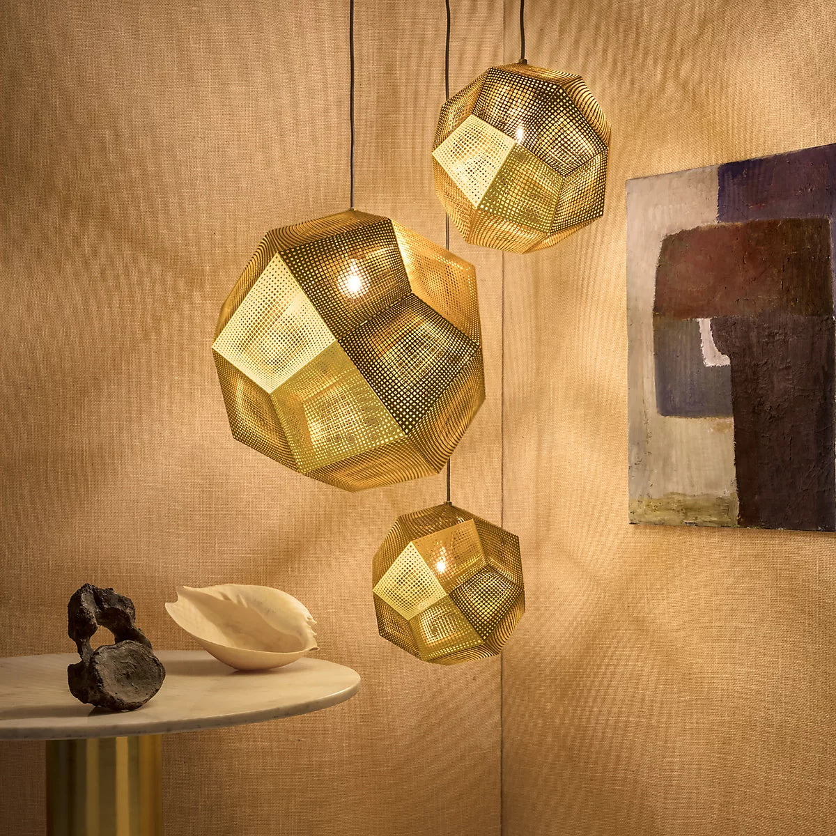 Die Celeste Pendelleuchte begeistert mit ihrer modernen Gitterstruktur im polyedrischen Kugeldesign. Das Licht bricht sich elegant durch das geometrische Metallgitter und erzeugt faszinierende Schattenmuster an Wänden und Decke. In den Farben Titan-Gold, Silber oder Roségold und drei Größen erhältlich, passt sie perfekt über Esstische, in Flure oder moderne Wohnräume. Die höhenverstellbare Aufhängung bietet maximale Flexibilität in der Raumgestaltung. Ein stilvoller Blickfang für Liebhaber moderner Lichtkunst.