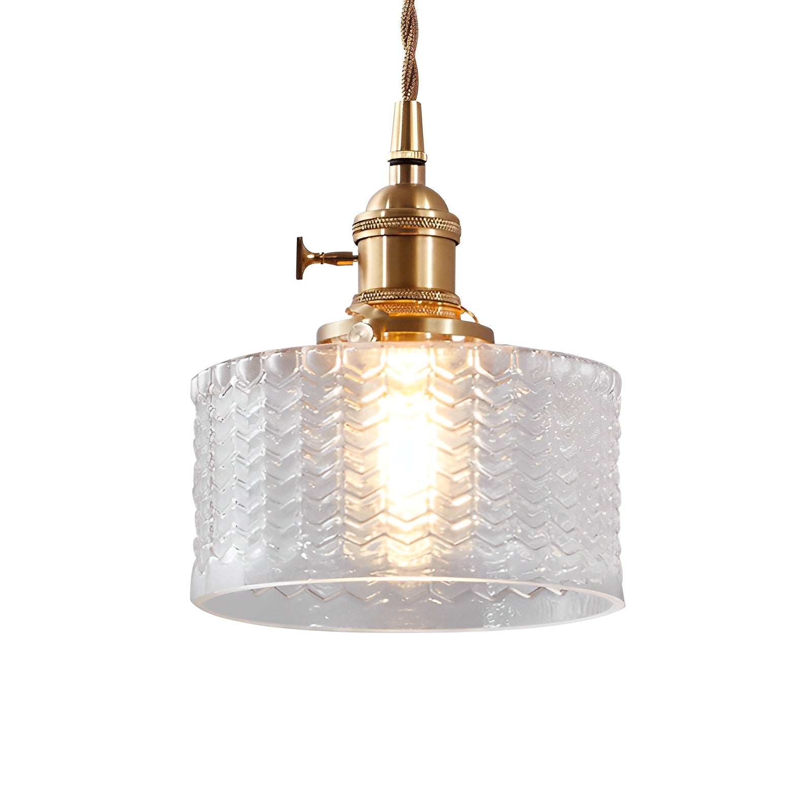 Die Clara Pendelleuchte bringt den Charme amerikanischer Landhaus-Ästhetik in moderne Wohnräume. Der kurze Zylinderschirm aus klarem oder grünem Wellen-Glas sorgt für ein stilvolles Lichtspiel und wird durch einen eleganten Drehschalter aus Messing ergänzt. Ideal über Esstischen, in der Küche oder im Flur – diese Leuchte vereint Retro-Flair mit zeitgemäßer Funktion. Das hochwertige Glas und der feine Messington setzen dekorative Akzente im Raum. Eine perfekte Wahl für Liebhaber von Vintage-Designs mit Charakter.