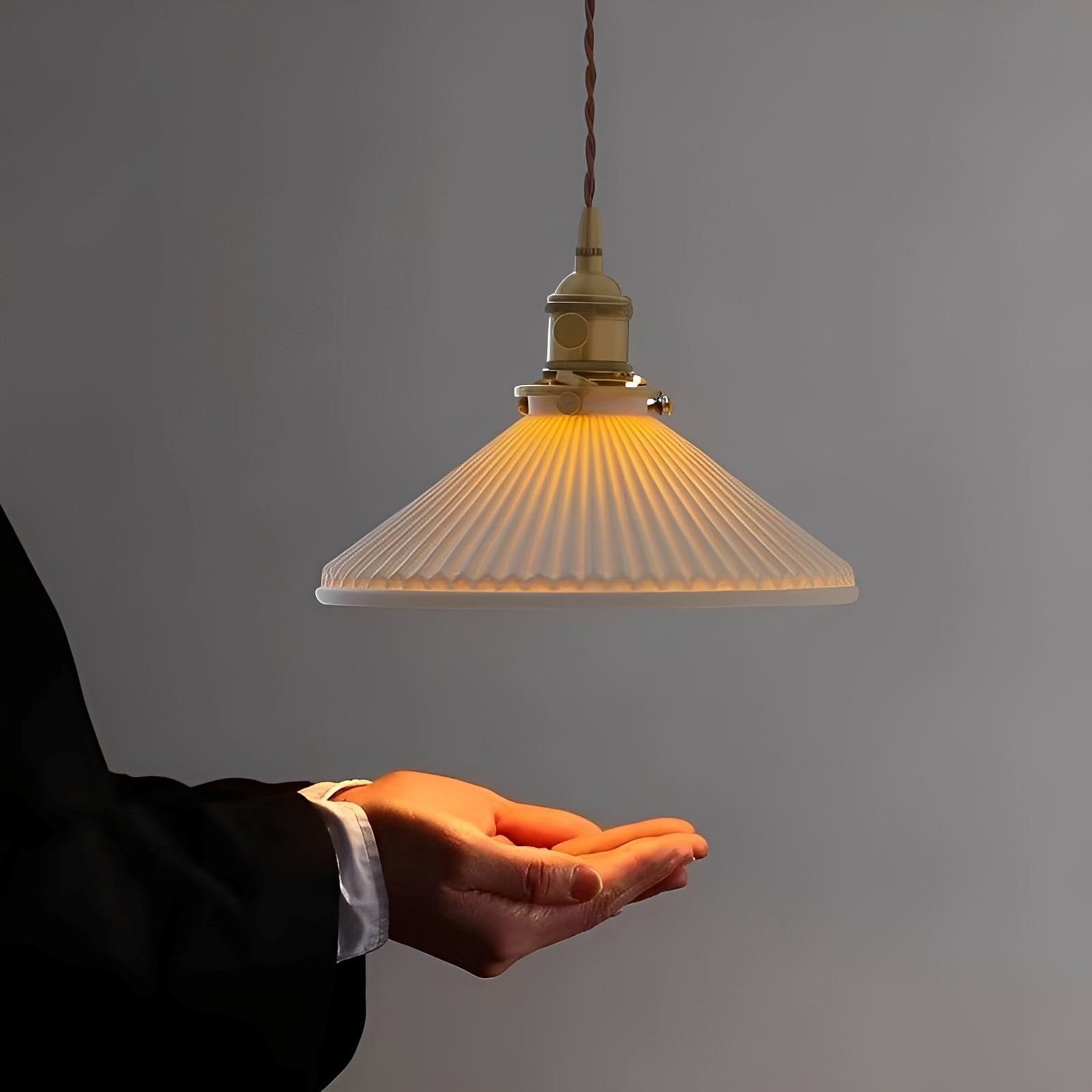Ines – Kleine Keramik-Hängelampe mit Messingdetails