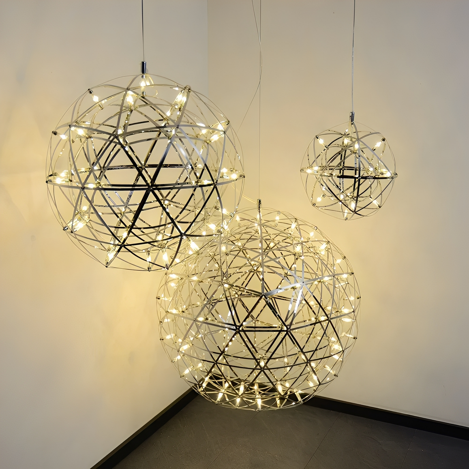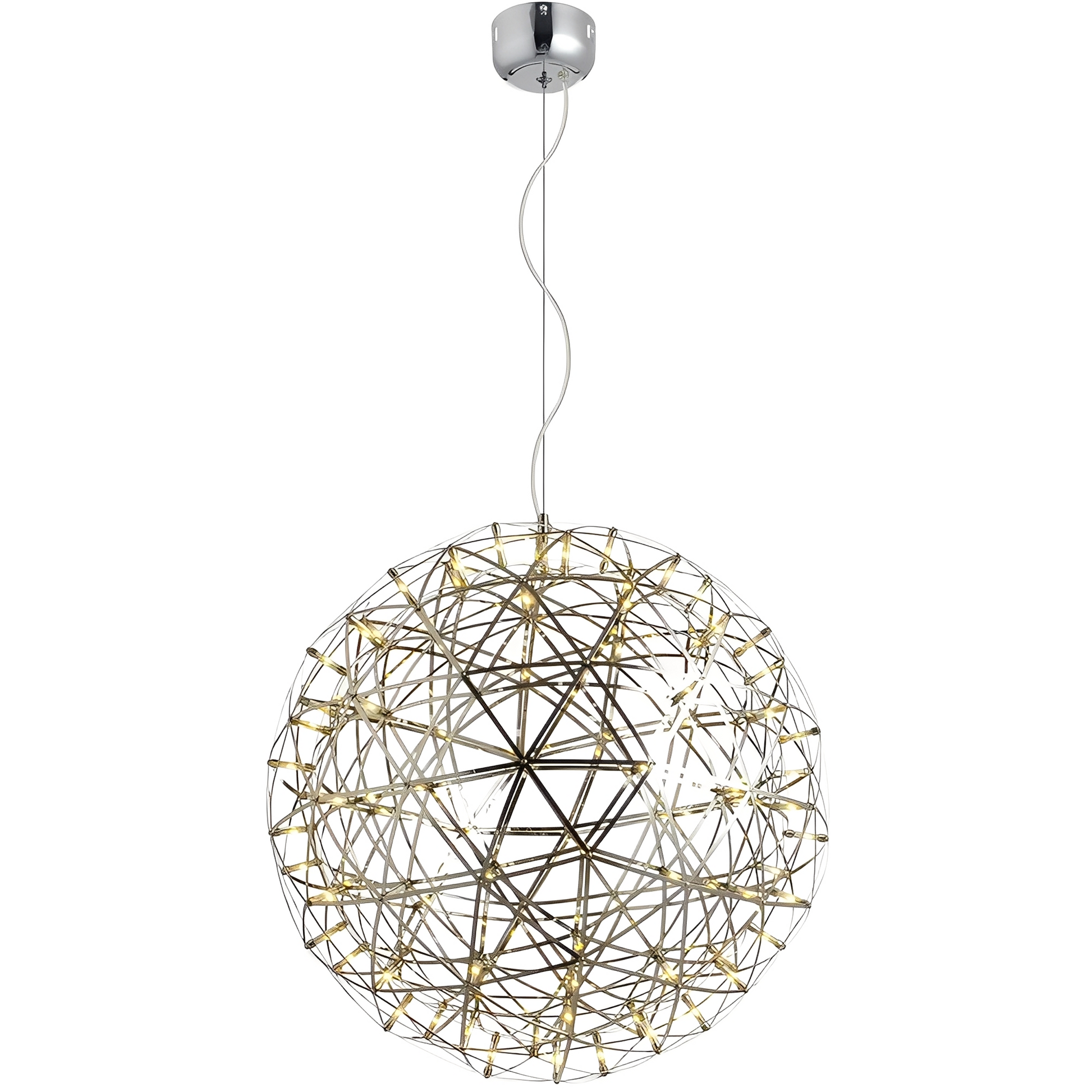 - Design: Kugelförmige LED-Hängelampe aus Metall