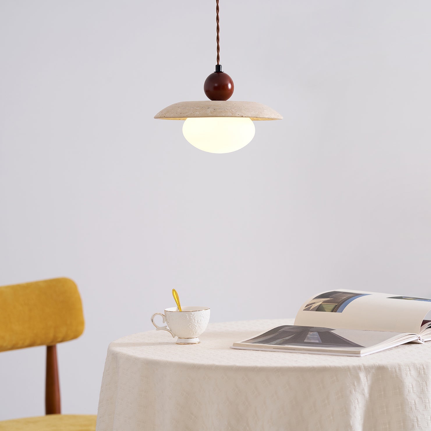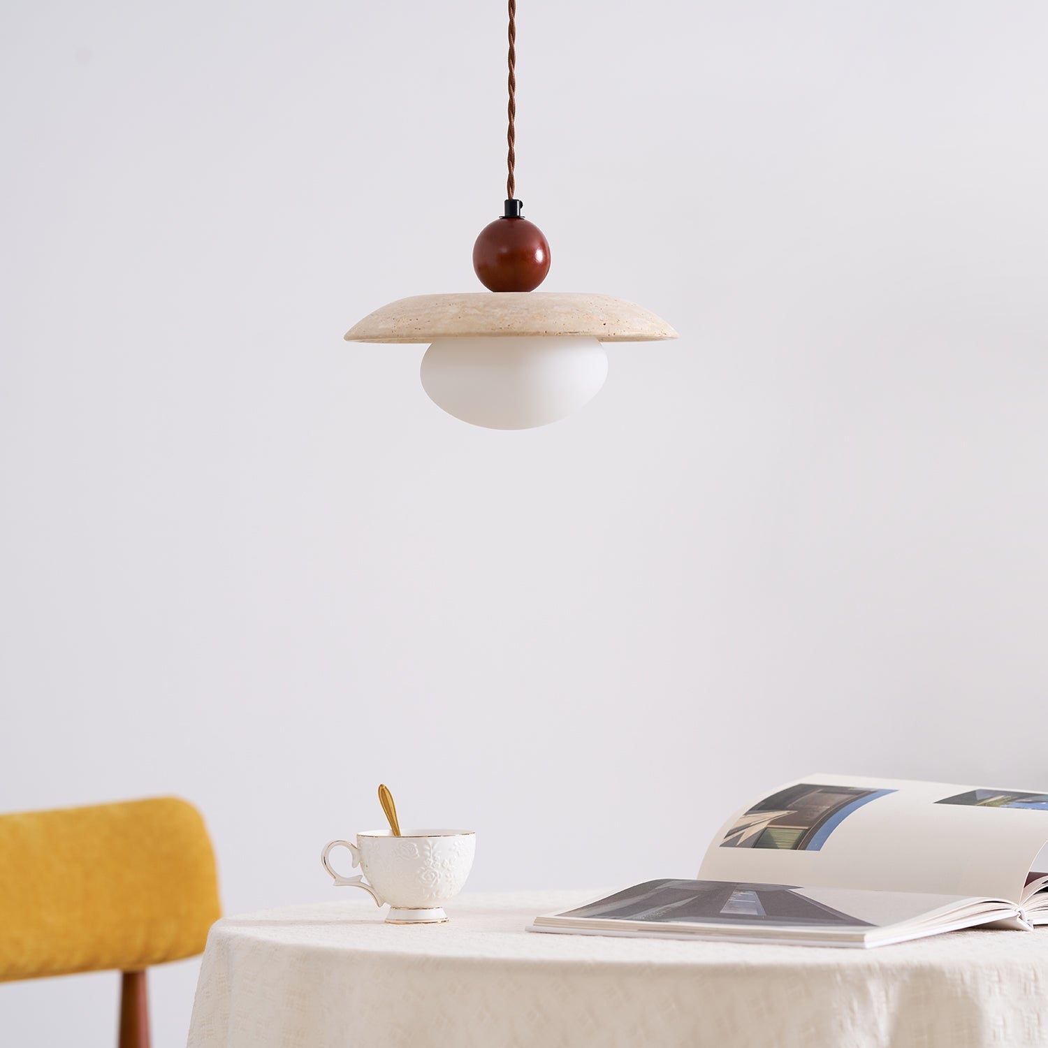 Die Kaori Pendelleuchte ist ein Meisterwerk aus natürlichem Travertin, das zeitlose Eleganz und organische Schönheit vereint. Jede Lampe ist ein Unikat – die feinen Maserungen und Farbnuancen des Steins machen sie zu einem besonderen Highlight in modernen und minimalistischen Räumen. Ideal für Essbereiche, Wohnzimmer oder elegante Eingangsbereiche.