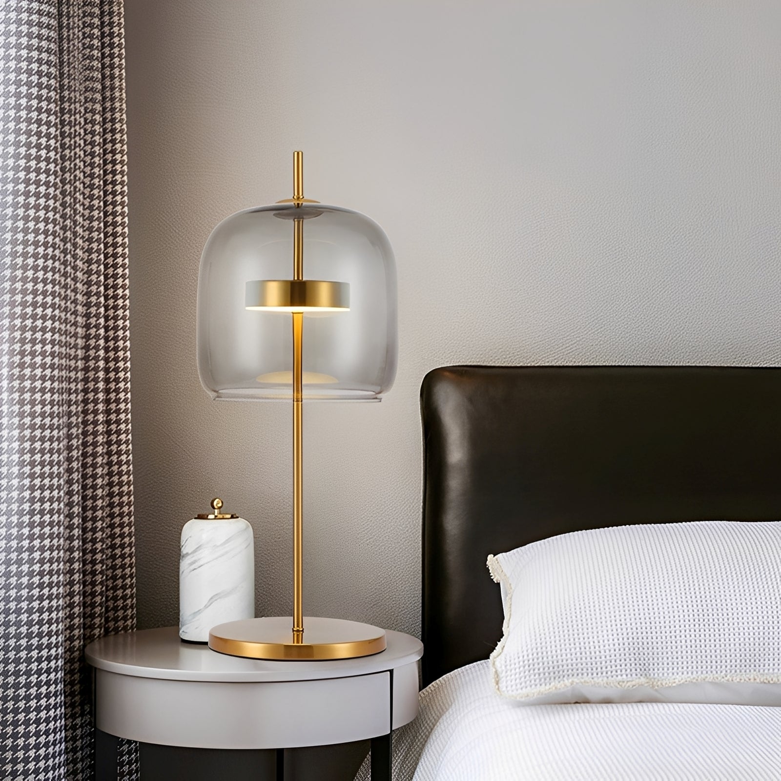 Meet Kimel — a sleek LED table lamp that blends glass elegance with a refined electroplated finish. Available in smoky gray or brown, it brings a warm, ambient glow to living rooms, bedrooms, or your bedside, elevating any modern space with timeless simplicity.