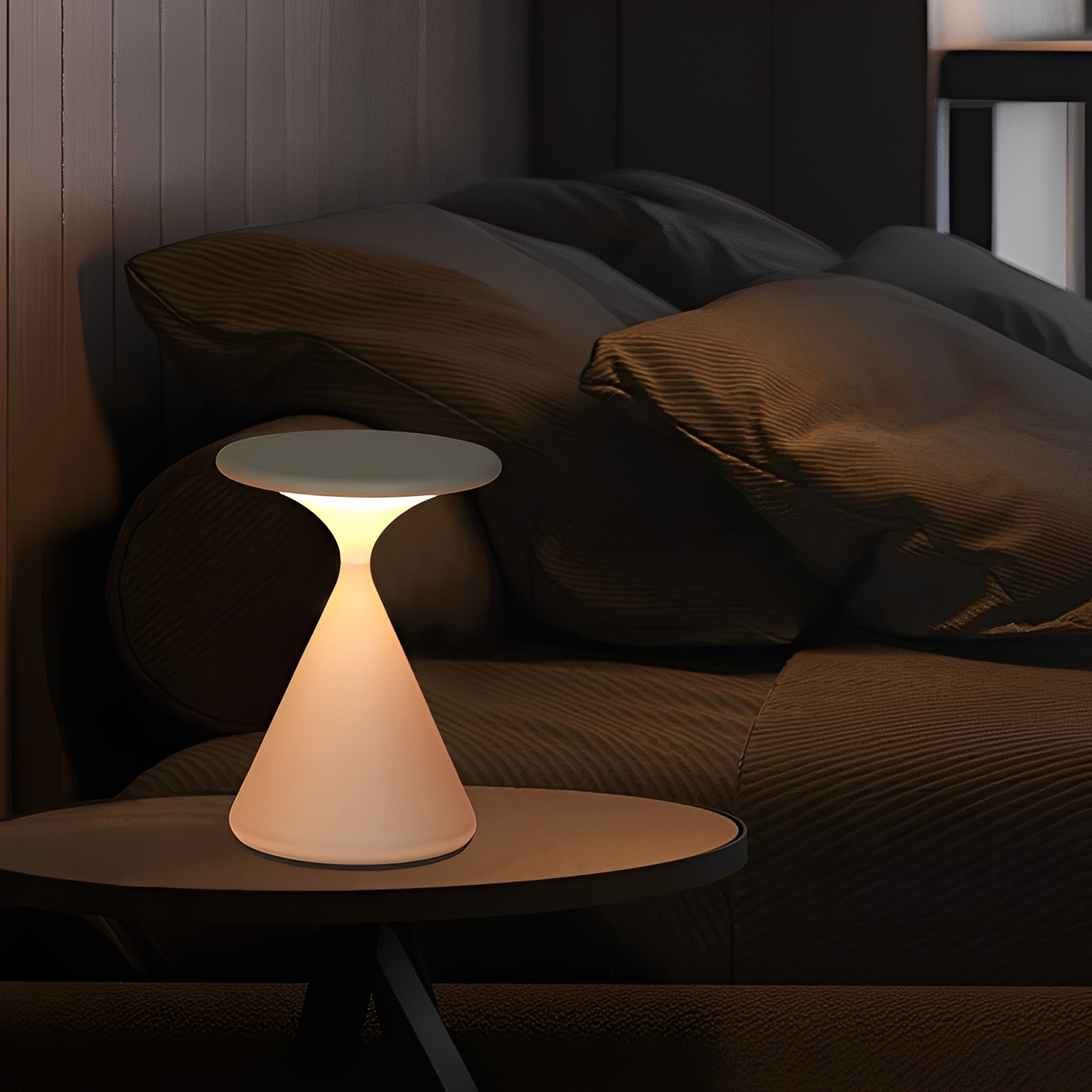 Die Kiri Tischlampe vereint moderne Schlichtheit mit kompakter, tragbarer Funktionalität. Ihr warmes 3000K Licht schafft eine gemütliche Atmosphäre – perfekt für Schlafzimmer, Nachttische oder kleine Arbeitsbereiche.
