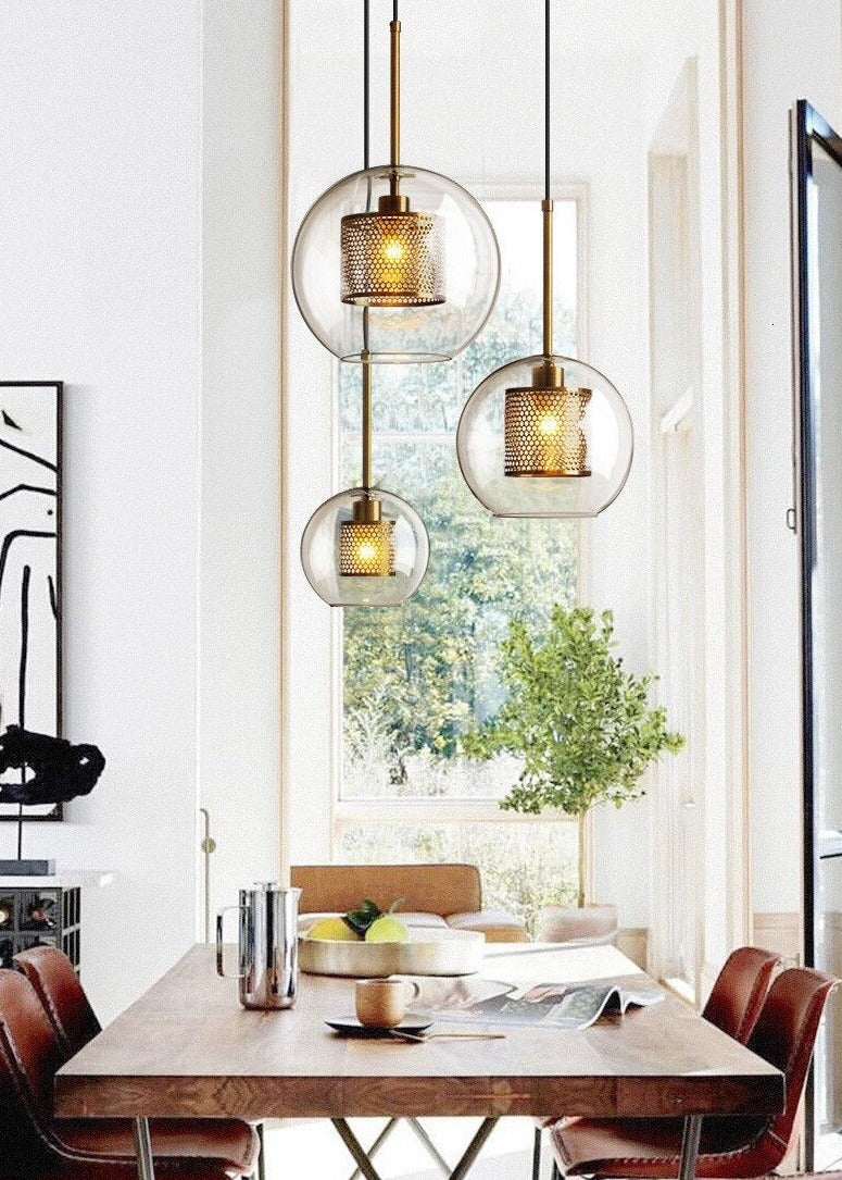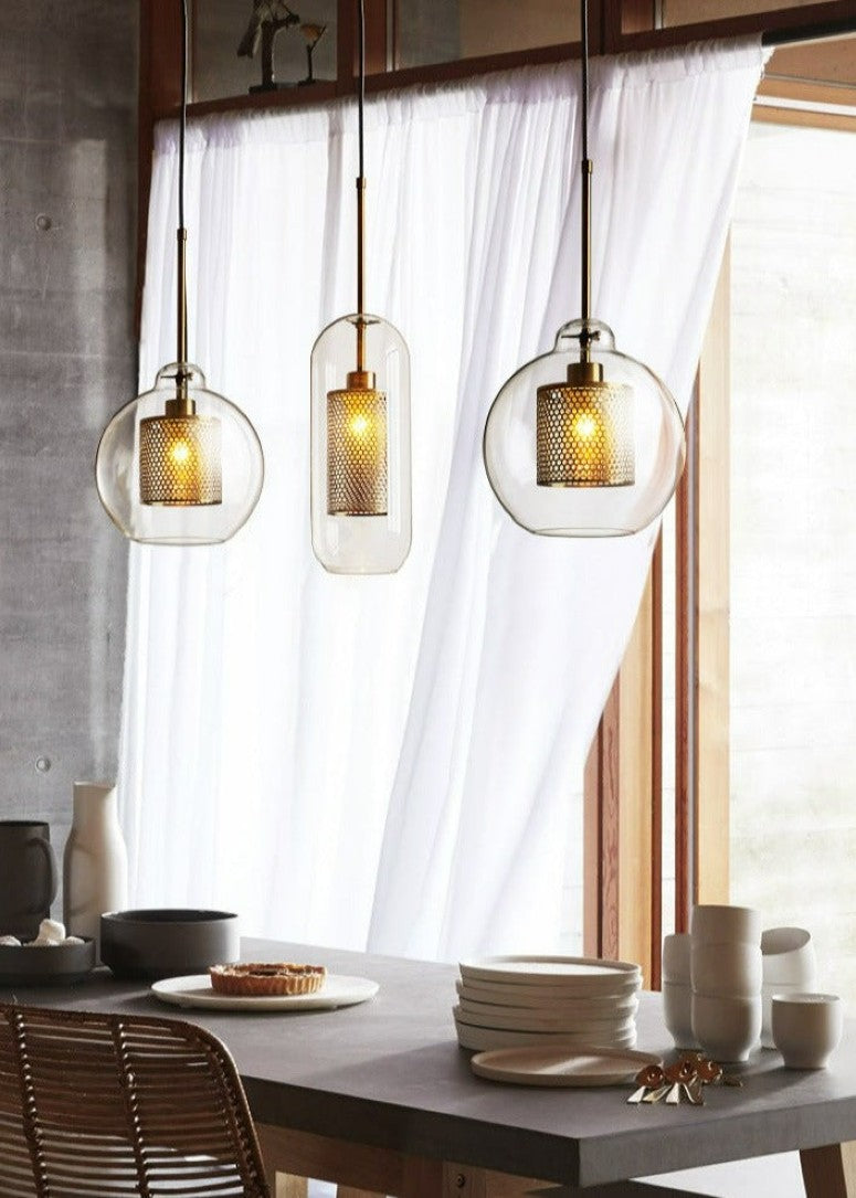 Die luxuriösen Glas-Pendelleuchten verbinden modernes Design mit hochwertigen Materialien und setzen stilvolle Akzente in jedem Raum. Die transparenten Glasschirme in Kombination mit edlen Metallelementen schaffen eine warme, einladende Atmosphäre – ideal für Esszimmer, Küchen oder Wohnzimmer. Dank ihres minimalistischen, aber eleganten Stils passen sie perfekt zu modernen und klassischen Interieurs.