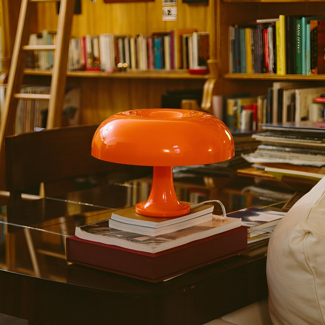 - Retro-inspiriertes Design: Stilvolle Pilzform in Orange oder Cremeweiß