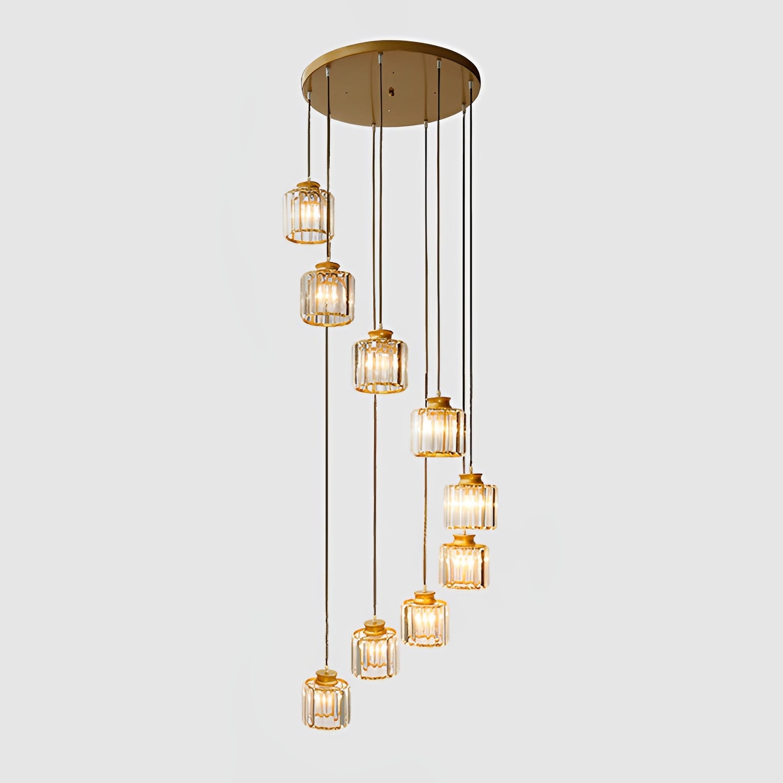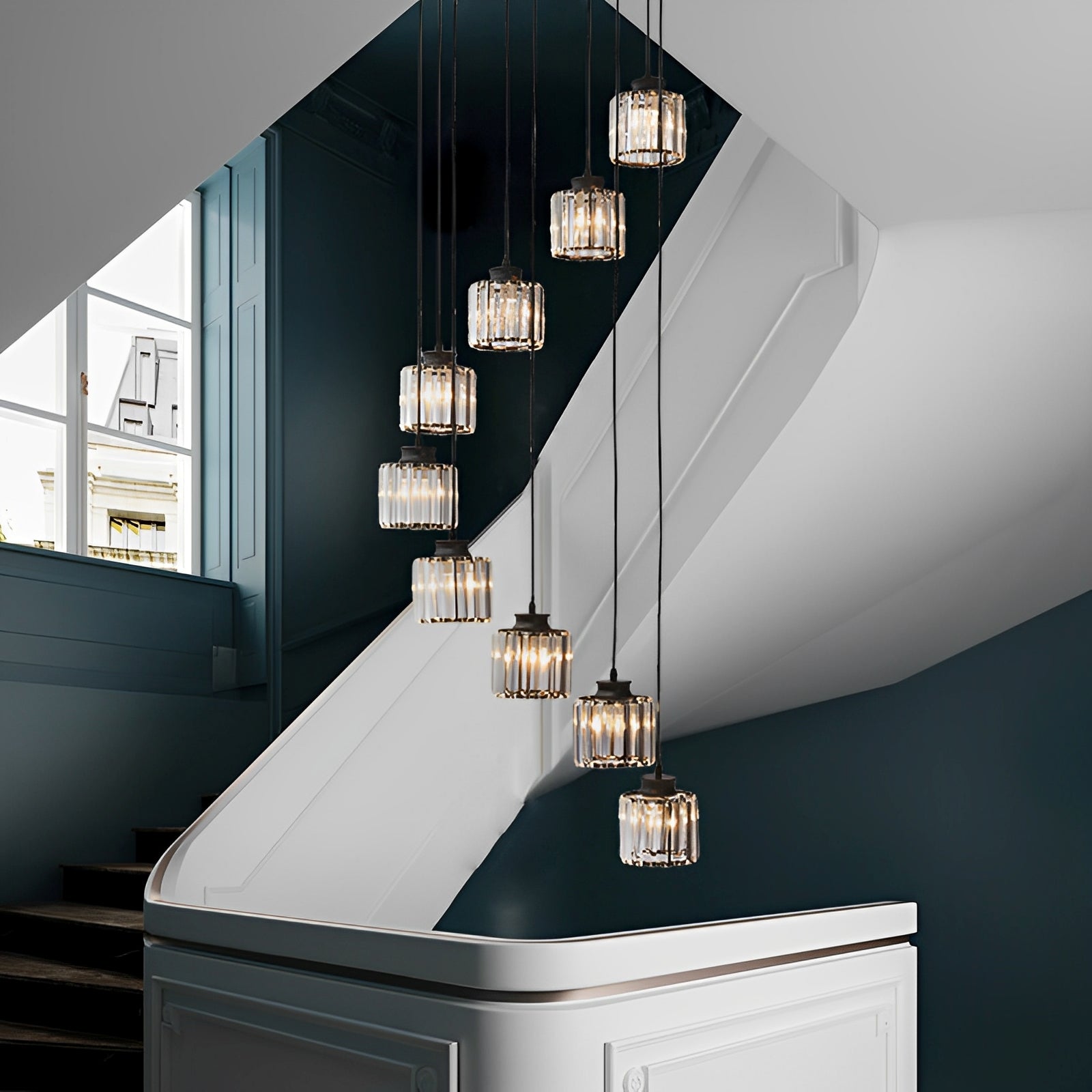 Die Remy Treppenhaus-Leuchte setzt ein luxuriöses Statement mit ihren schlanken Kristallzylindern, die in mehreren Höhen schweben. Die Kombination aus edlem Gold oder klassischem Schwarz unterstreicht den modernen Light-Luxury-Stil – perfekt für offene Treppenhäuser, hohe Decken oder Galeriebereiche. Wählbar mit 6 oder 9 Leuchtkörpern erzeugt sie ein schimmerndes Spiel aus Licht und Transparenz. Ideal für Flure oder Ausstellungsräume, verleiht sie jeder Umgebung eine exklusive Atmosphäre. Ihre vertikale Komposition macht sie zu einem echten Blickfang in modernen Wohnkonzepten.