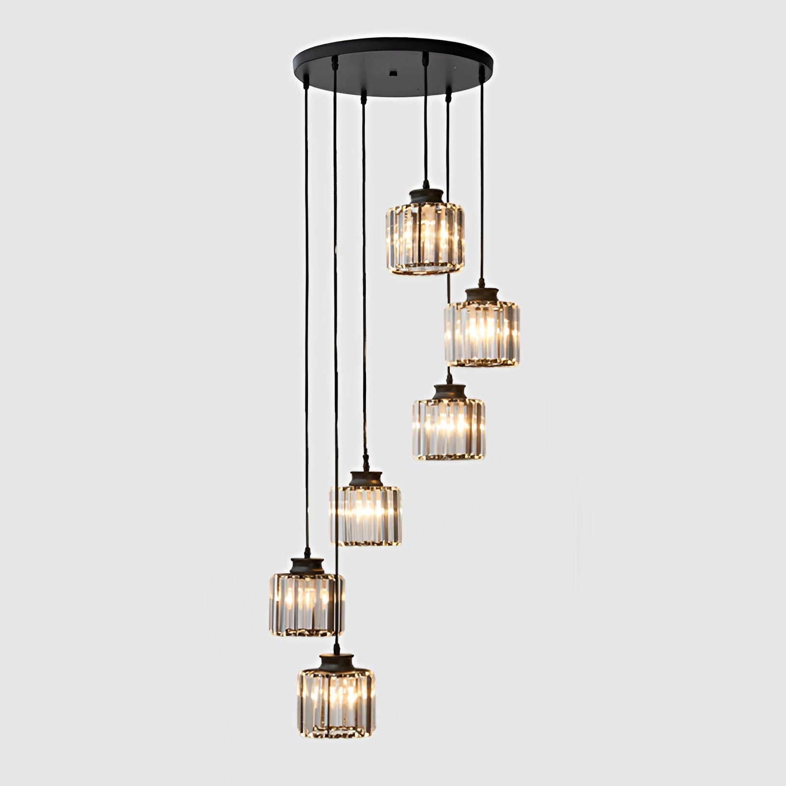 - Typ: Mehrflammige Deckenleuchte mit Kristallzylindern