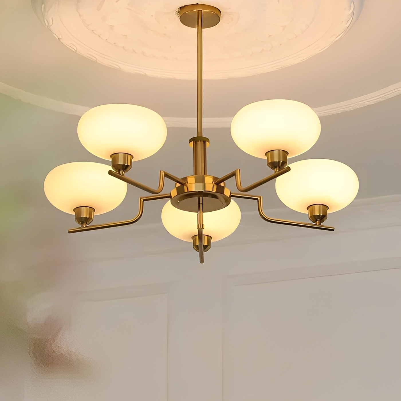Varianten: 3- oder 5-flammig mit Milky White oder Custard Schirmen (inkl. Staubschutz)