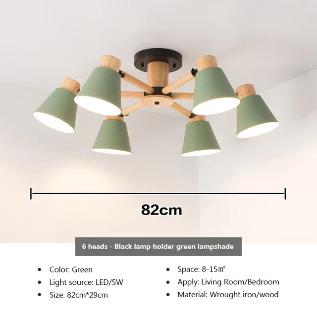 Skandinavische Macaron-Deckenleuchte mit Holzdetails
