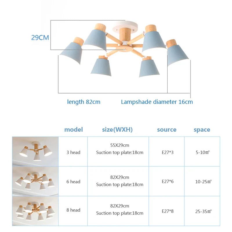 Verleihen Sie Ihrem Zuhause einen Hauch nordischer Leichtigkeit – mit der Skandinavischen Macaron-Deckenleuchte mit Holzdetails.