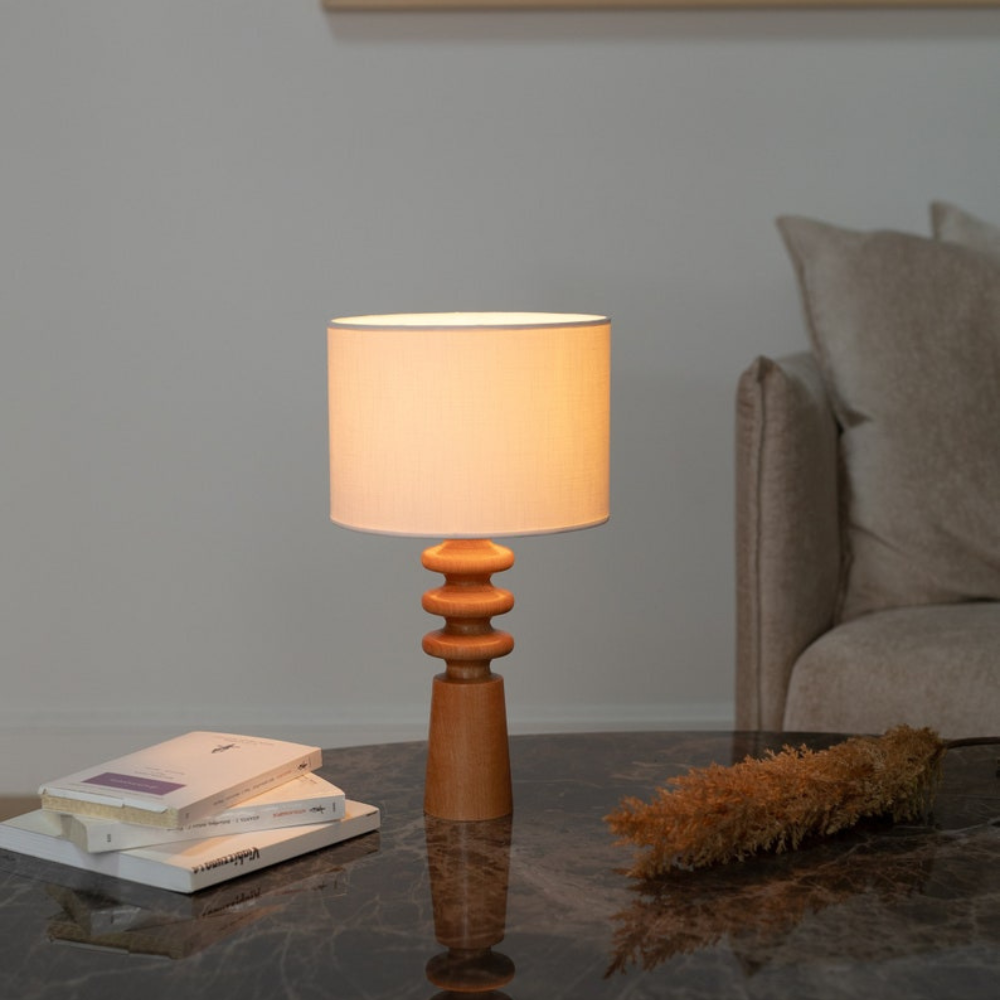 - Material: Massivholzsockel, Lampenschirm aus Stoff