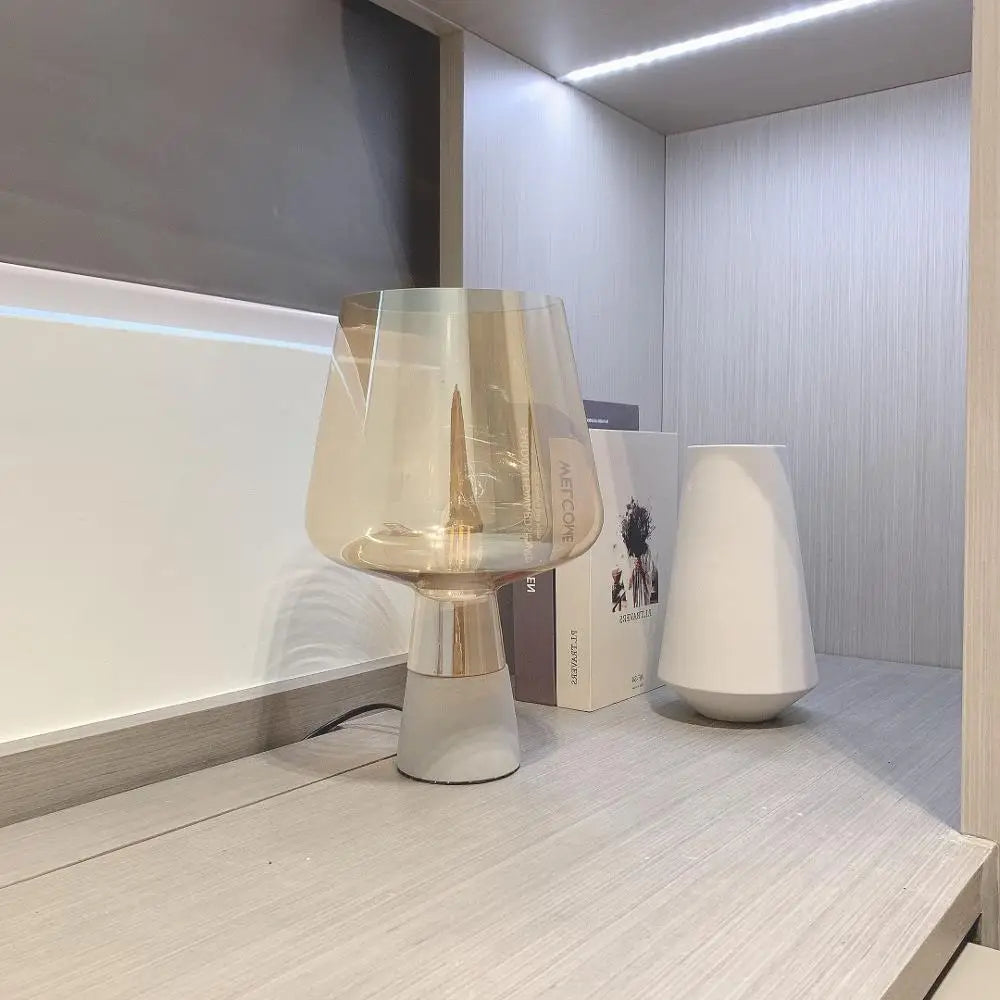 Setzen Sie stilvolle Akzente in Ihrem Raum mit dieser einzigartigen Tischlampe im Champagnerglas-Stil – für ein modernes und gemütliches Ambiente.
