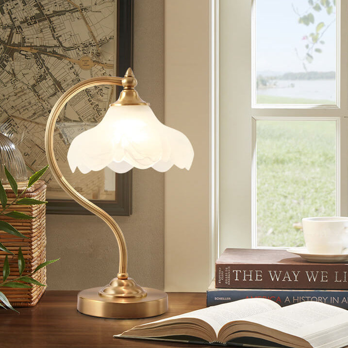 Maribel – Vintage Messing und Glas Blüten-Tischlampe