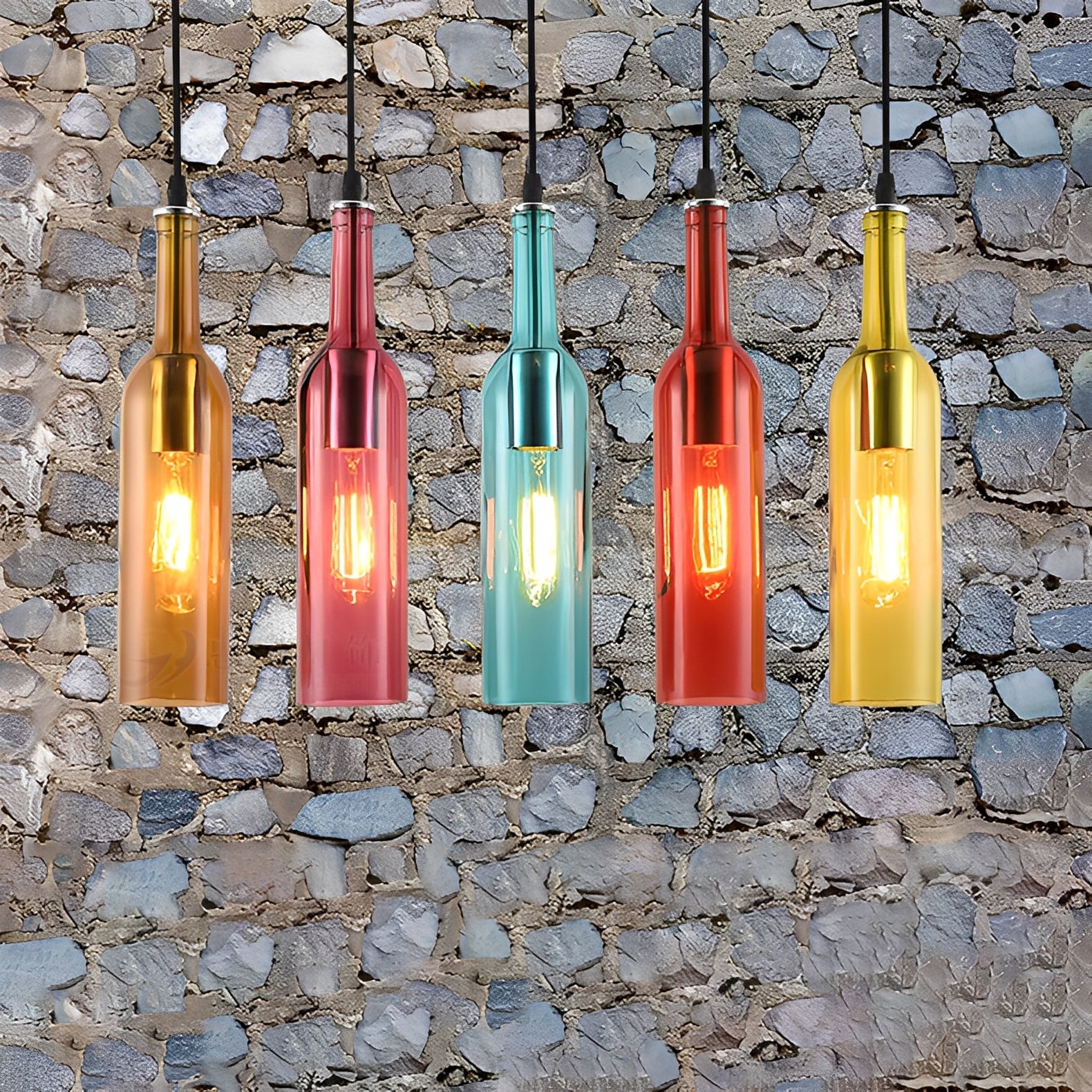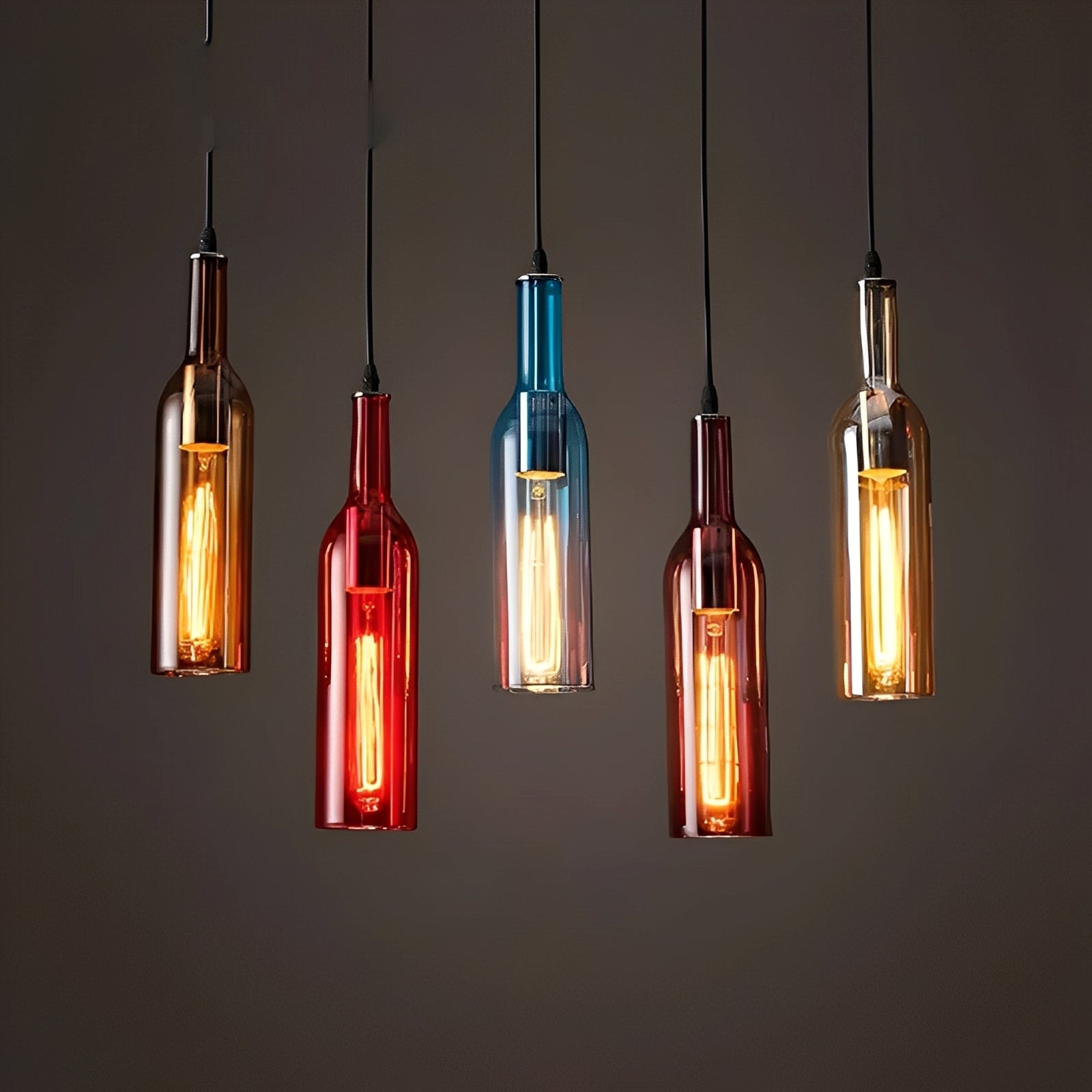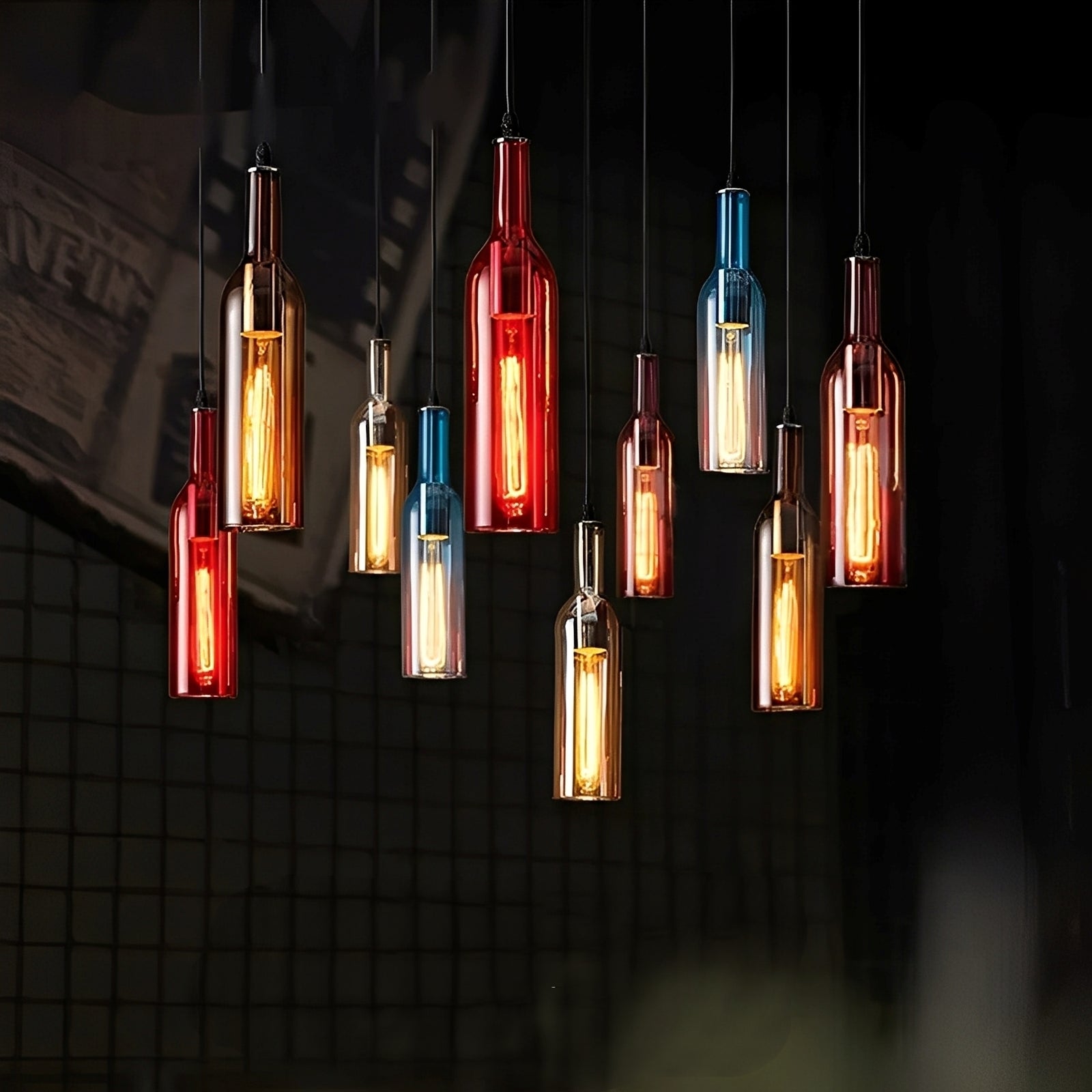 Yvette bringt den einzigartigen Charme industriellen Designs direkt in Ihr Zuhause oder Ihre Bar. Mit farbigen Glasflaschen und stilvollen Glühbirnen entsteht ein unverwechselbares Lichtambiente, das sofort ins Auge fällt.