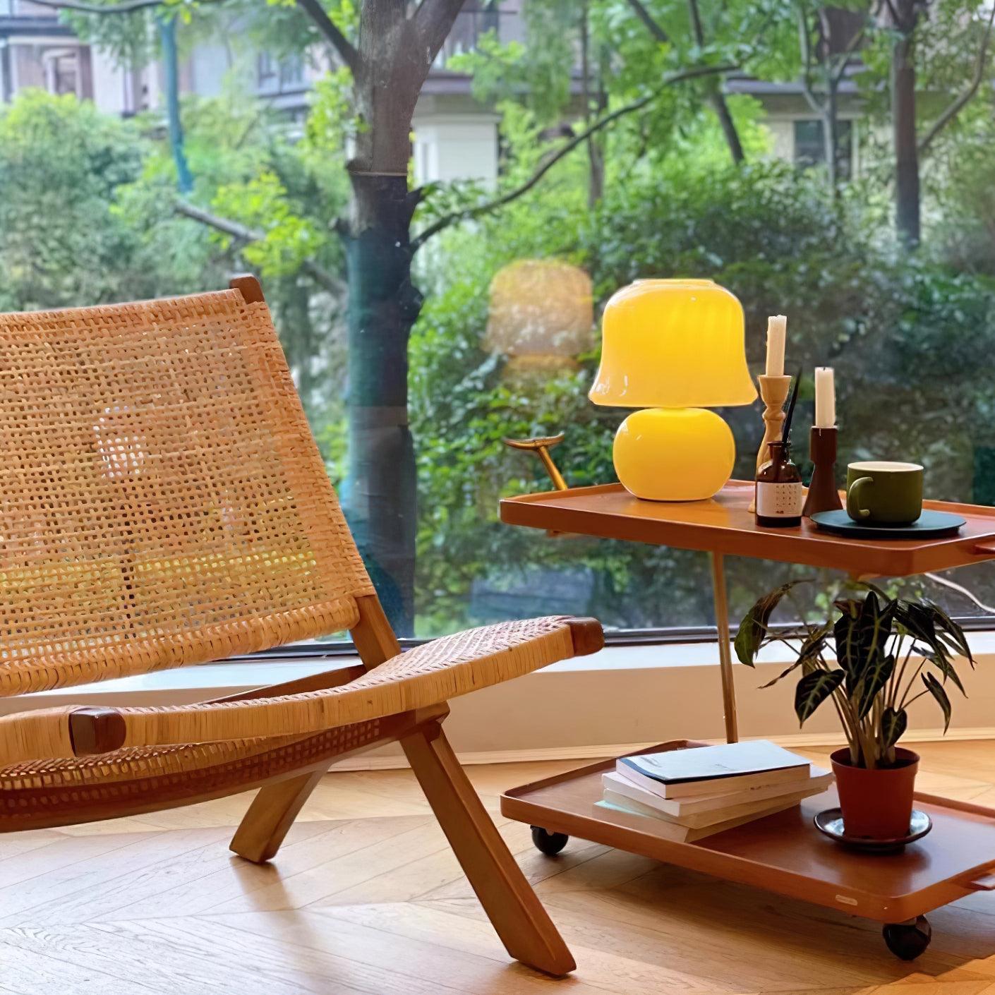 - Elegantes Pilzdesign: Moderner Look mit weichem, cremigem Glas